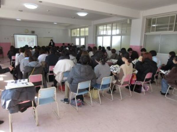 来年度も1年生は2クラスの予定です。最近は、説明動画や資料もペーパーレスでネット上に記載するなどの対応をすることもありますが、入学前にぜひ保護者の皆様に学校の様子を見てもらいたいのと、学校と保護者が一体となって子どもたちを育てていきたいとの思いからも参集での説明会にさせていただいています。今回の説明会もご理解とご協力をいただき、ほとんどの保護者の方が参加をしていただきました。