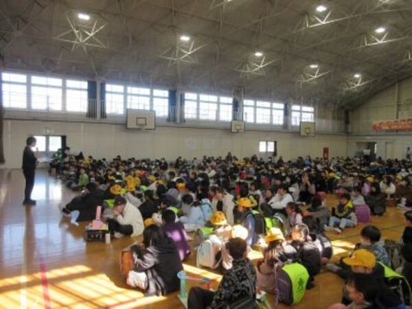 本校安全主任から、登下校を安全におこなうための注意などを伝えたあと、今年度、班長として頑張ってくれた人に感謝を込めて感謝状を贈呈しました。